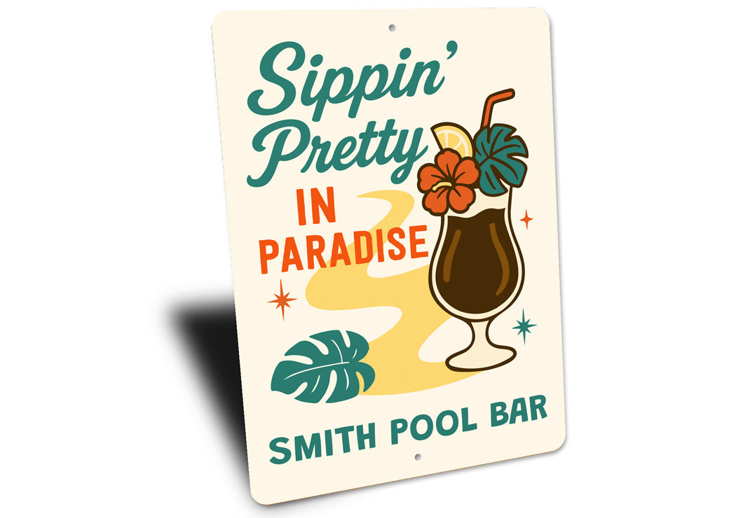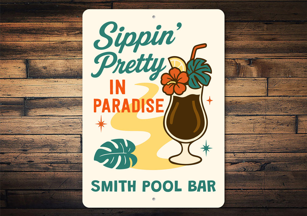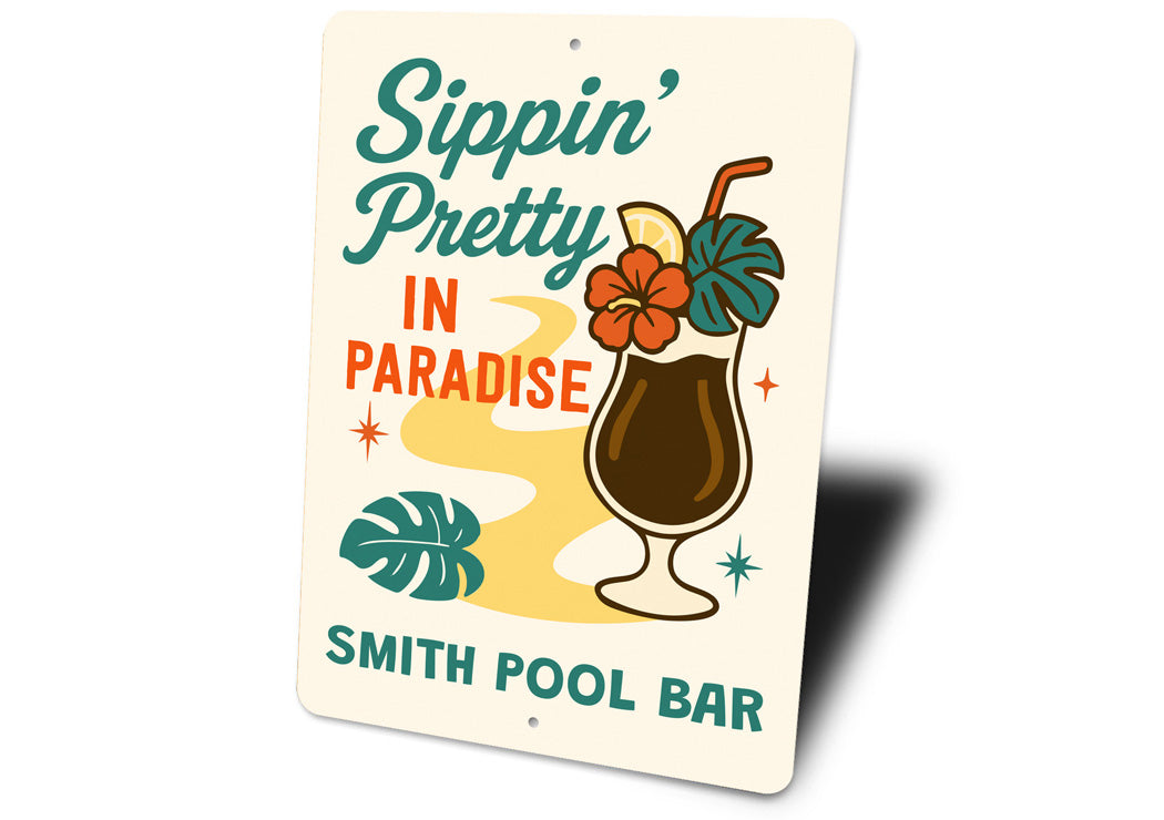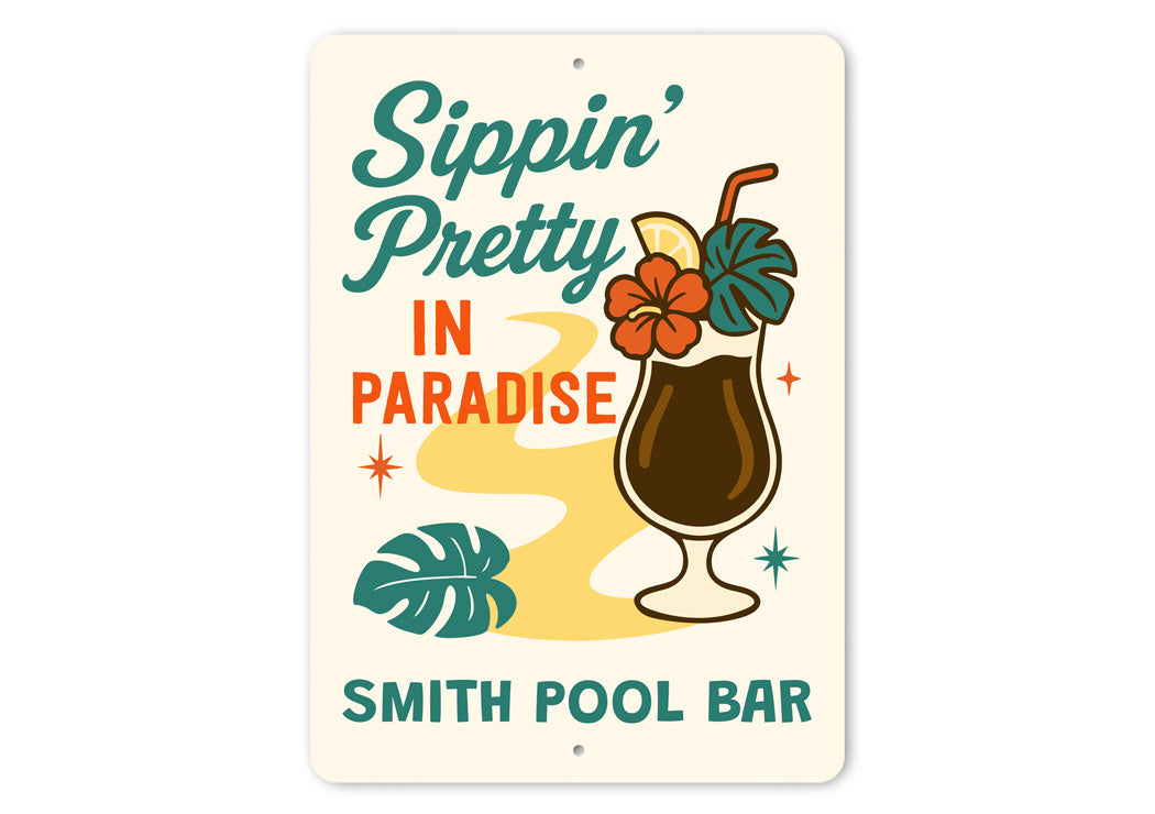 Sippin Pretty In Paradise Personalized Pool Bar Sign