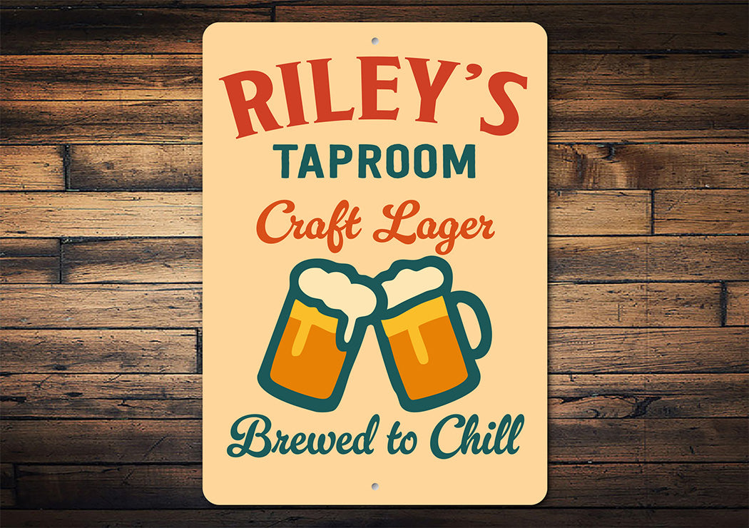 Personalized Taproom Craft Lager Brewed To Chill Sign
