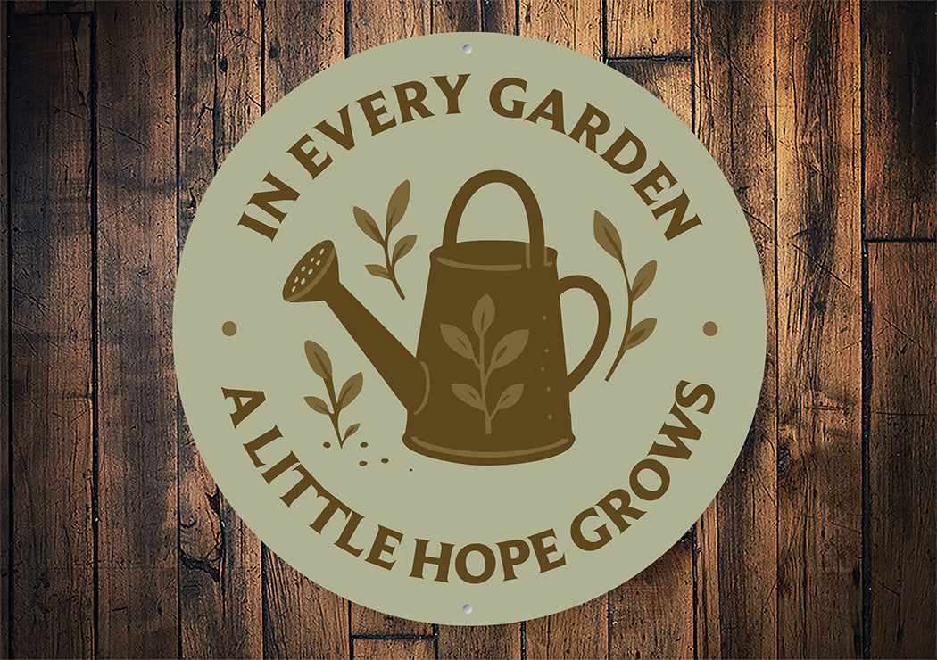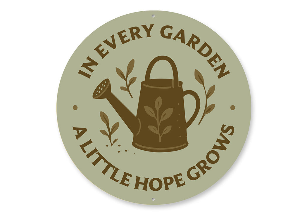 In Every Garden A Little Hope Grows Watering Can Round Sign
