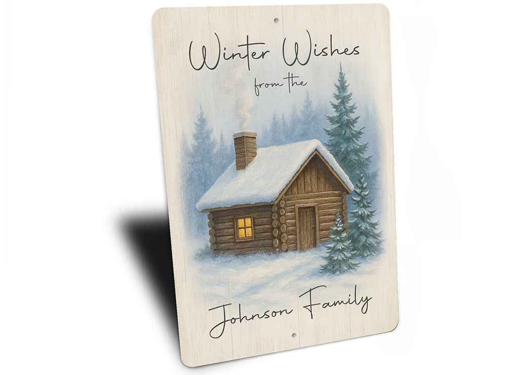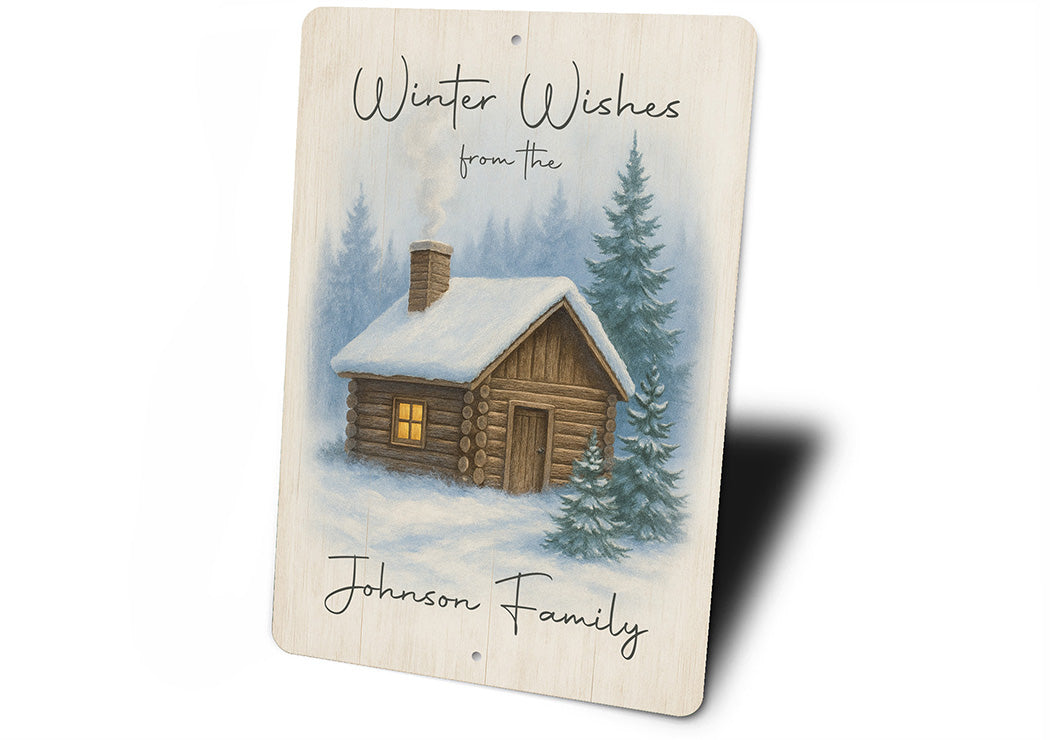 Winter Wishes From The Johnson Family Wood Cabin Sign
