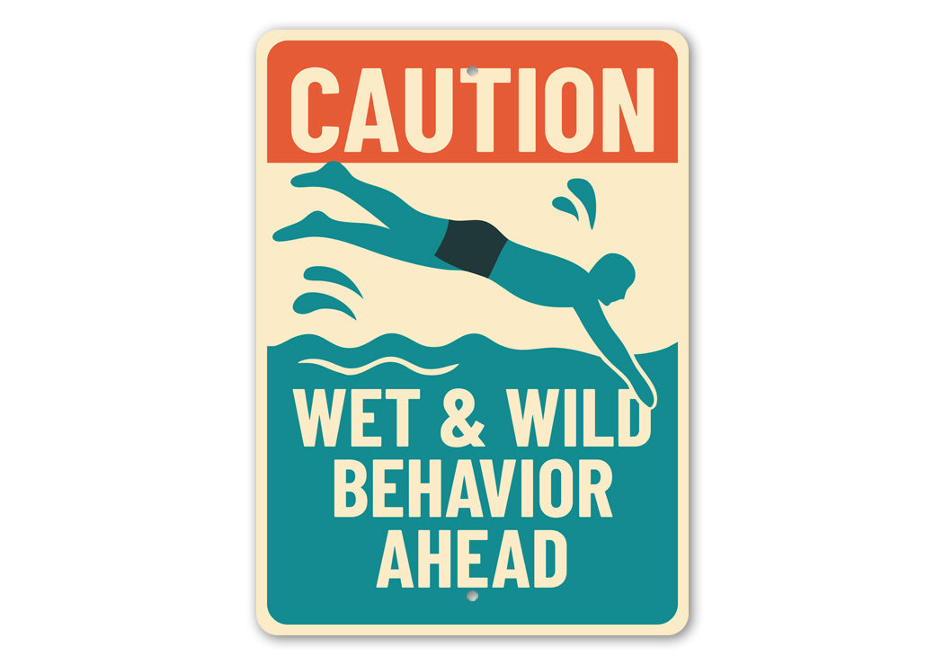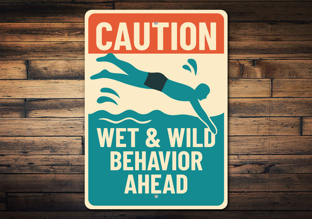 Caution Wet And Wild Behavior Ahead Pool Diving Sign