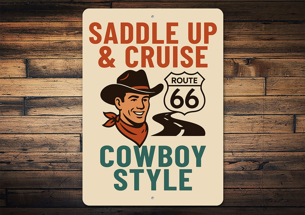 Saddle Up And Cruise Cowboy Style Route 66 Sign