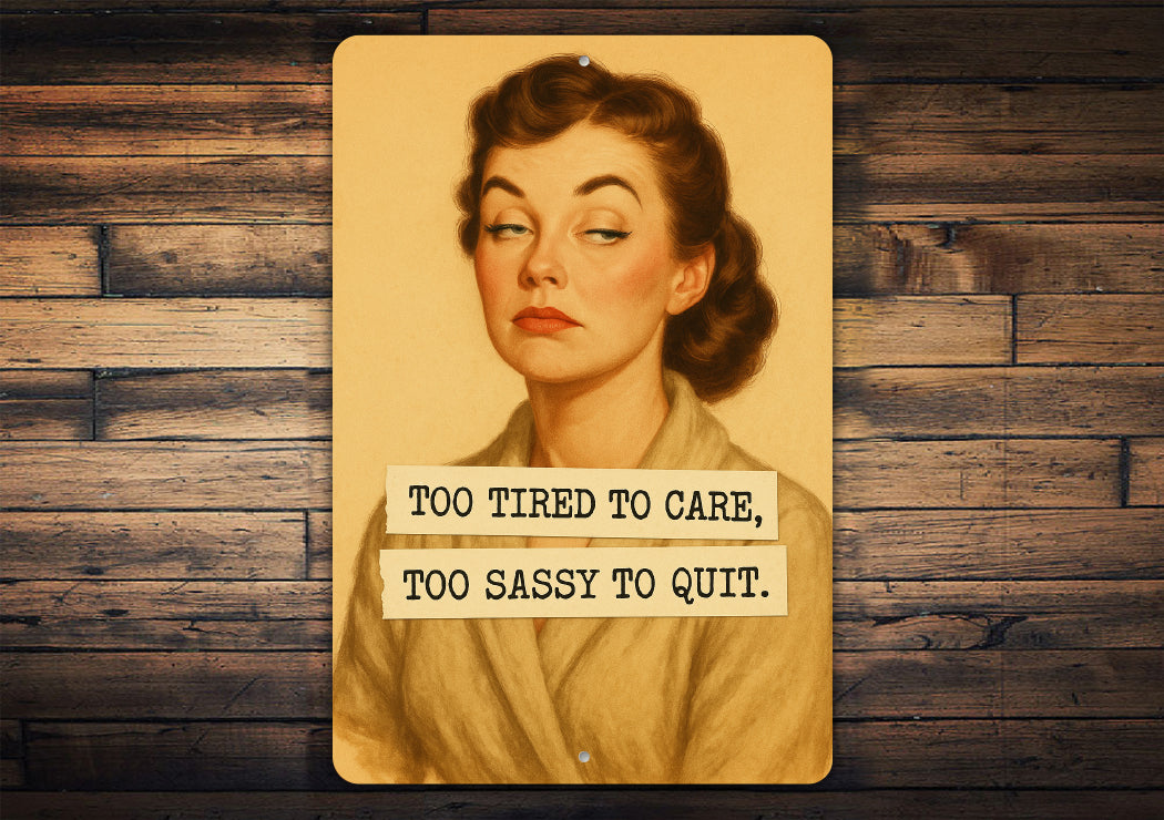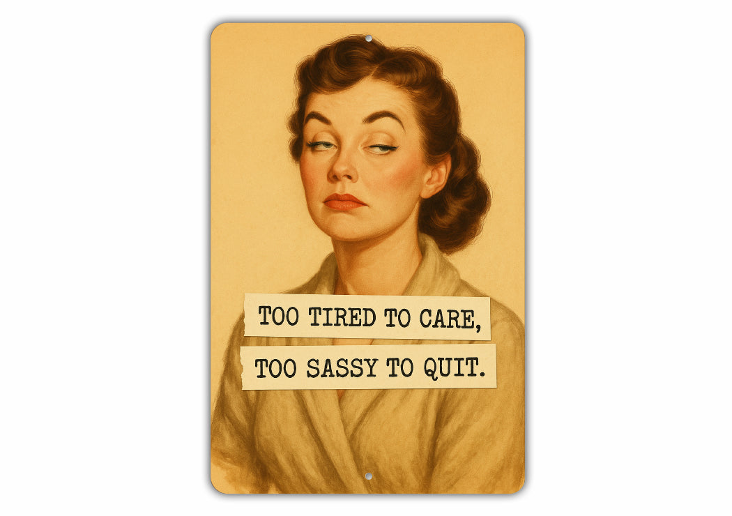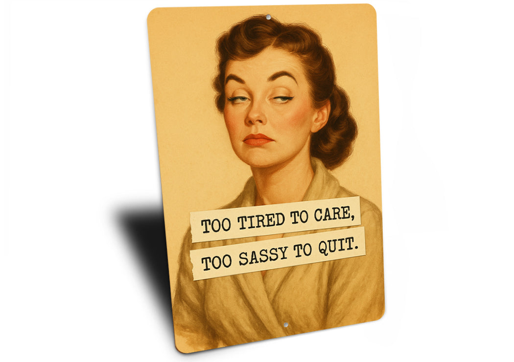 Too Tired To Care Too Sassy To Quit Sign
