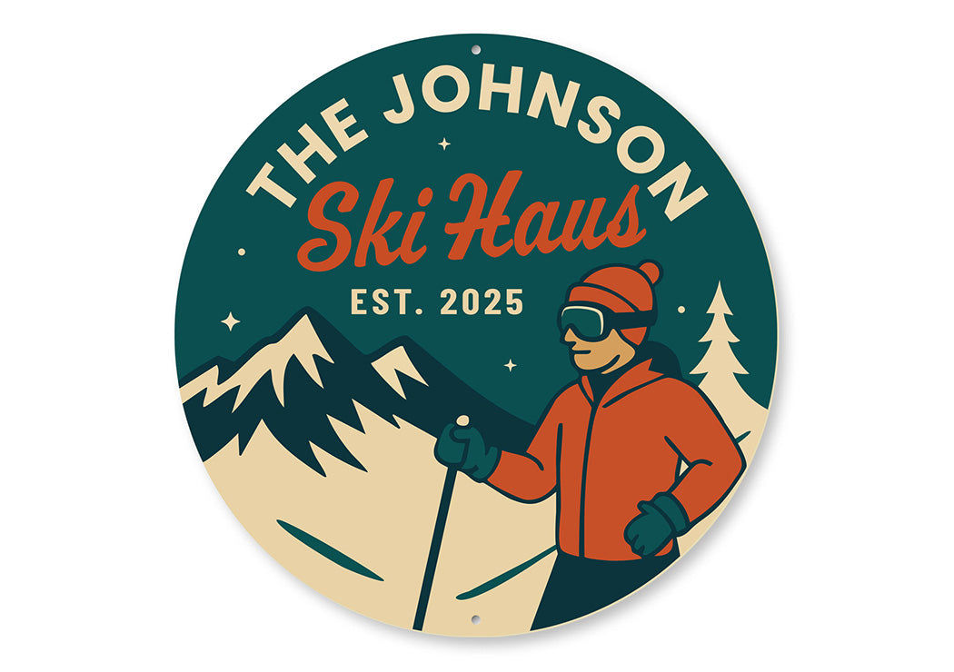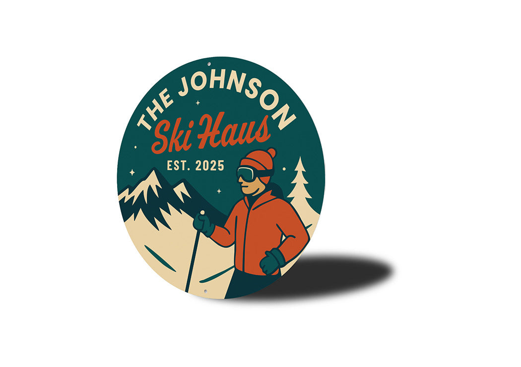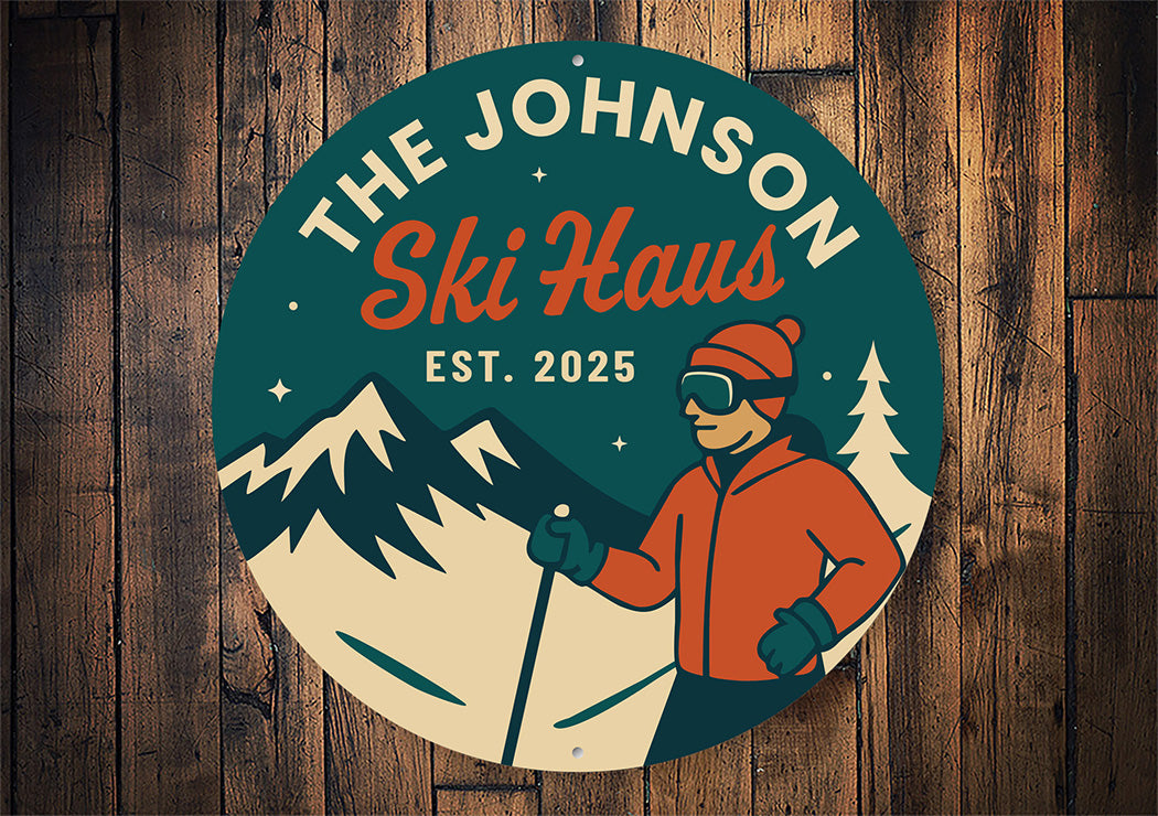 Celebrate ski lodge nostalgia with this vintage-style Johnson Ski Haus aluminum sign. Featuring classic typography and "Est. 2025" branding, this rustic wall decor piece adds authentic alpine charm to any space. Perfect for game rooms, bars, or mountain-themed interiors, it makes an excellent gift for ski enthusiasts.