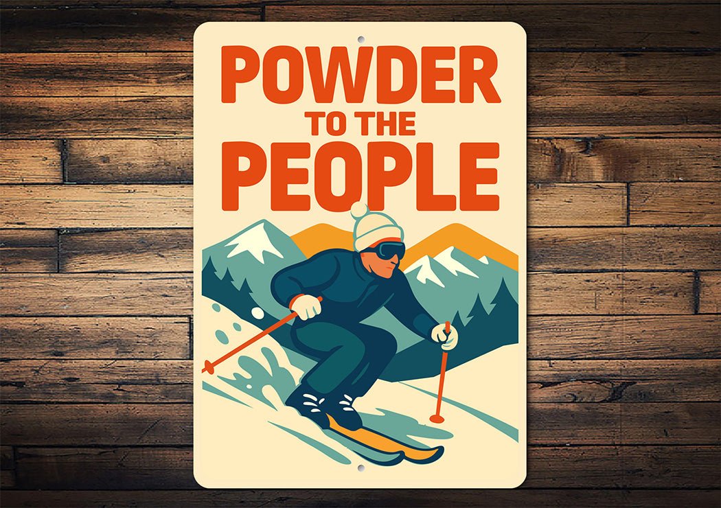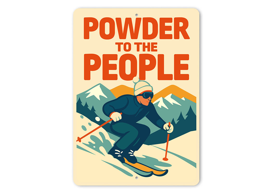 Declare your love for fresh tracks with this rebellious Powder to the People aluminum sign. Featuring bold, vintage-inspired typography, this sign captures the free-spirited essence of ski culture with its playful twist on a classic slogan.