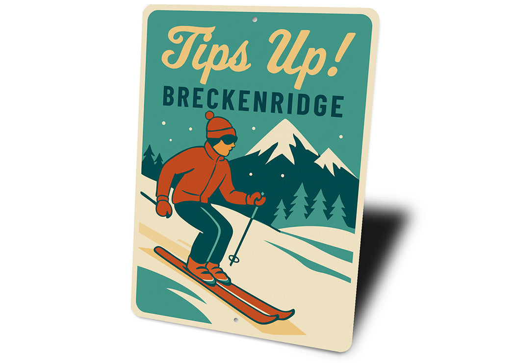 Vintage Tips Up! Breckenridge Ski Town Aluminum Sign