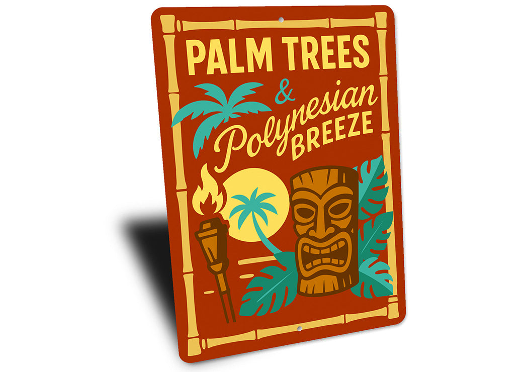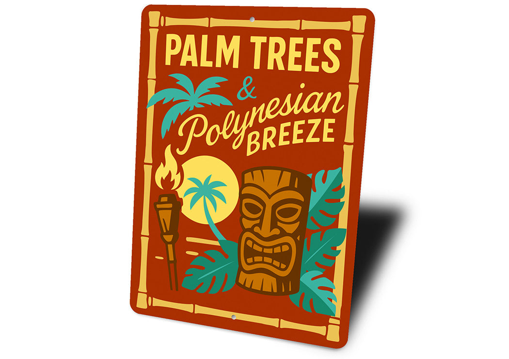 Vintage Palm Trees And Polynesian Aluminum Tiki Sign