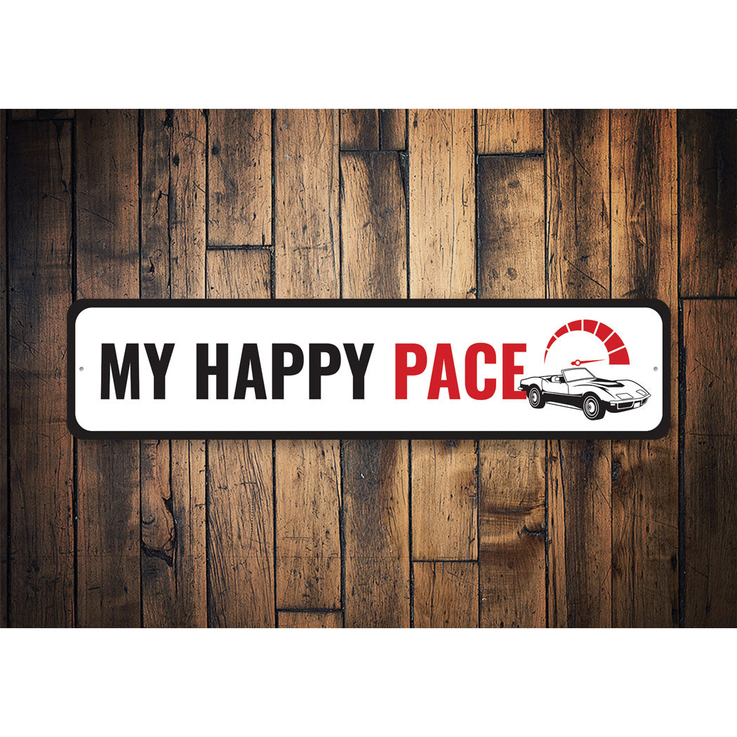 Chevy Corvette My Happy Pace Metal Sign
